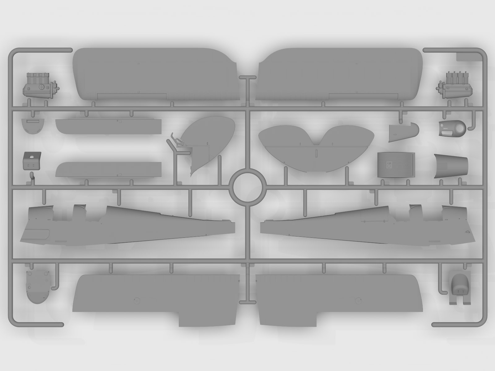 Precise reproduction of aircraft geometry with detailed fuselage, engine, and cockpit elements