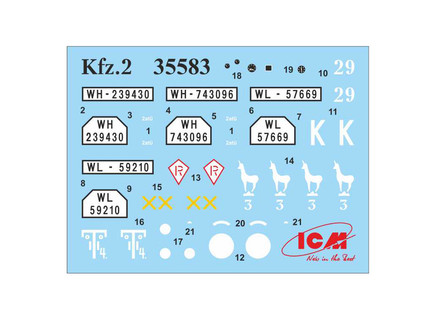 - The set includes: L3000S truck, Kfz.70 infantry carrier with Zwillingssockel 36 mount, and Kfz.2 radio vehicle