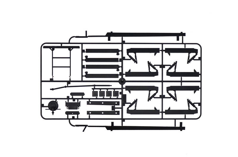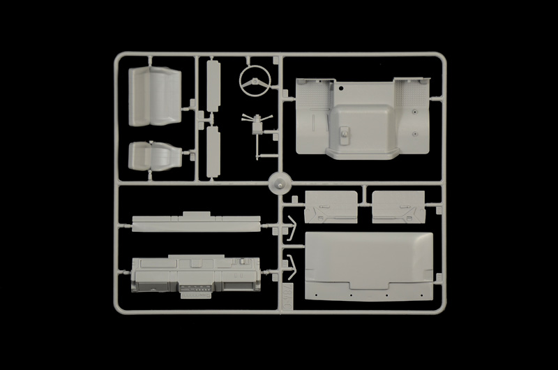 Due to ever increasing salety requirements at modern buildings to-days fire engines require extremely high standards. The ladder (DLK 23-12) enables the fire fighters to reach a max. height of 23 m. at a distance of 12 m. These ladders are being mounted on different truck chassis according to customers specifications, where by the assembly is caried out by specialized companies, in our case by Magirus-IVAECO. The ladder contains 4 units made out of steel proliles with a basket at the end which can take up to 3 persons. Thus the vehicle is usable for fire fighting as well as rescue missions. To increase the stability those turntable ladders have ateral supports Our model consists ot a detailed truck with turntable ladder which can be mounted in fire fighting or moving positon.