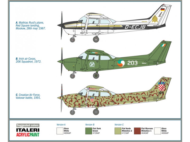 The single-engine fixed-wing Cessna 172 Skyhawk is a real milestone of the civil and commercial aviation history. It has been developed during the ‘50s and it is characterized either for its extraordinary longevity or for the incredible commercial success with more than 43,000 units produced. The “Skyhawk” is a single-engine four-seater high-wing plane and is used both as light commercial aircraft and as training plane. Characterized by its simple design based on the high wing and the frontal tricycle landing gear, it is able to reach the cruiser speed of 230 Km/h and to carry on board one pilot and three passengers A curiosity: on May 1987 the Skyhawk has ben used by a young German pilot to fly an unauthorized flight from Helsinki through Soviet airspace and to land close to Red Square in Moscow.
