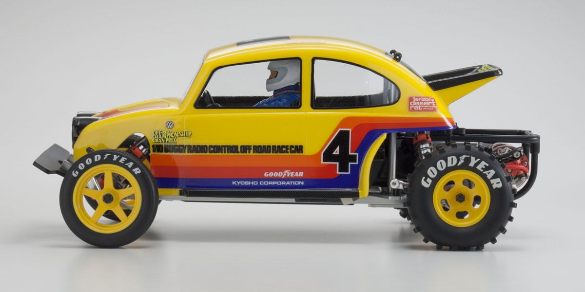 The famous Kyosho Scorpion and Baja Beetle combined into one legendary off-road machine that became synonymous with electric buggy racing in the 1980’s, a name that is still known around the world today. Now, in honor of the original Scorpion and its many fans, the Beetle makes a triumphant return with the advanced Scorpion 2014 chassis featuring the same basic ladder frame 2WD structure as the original, but with the latest technology and components. from the kit, making assembly easier and the finished chassis lighter and more rigid. From experts familiar with the Scorpion’s standard of performance to present-day drivers unaware of the Scorpion legend, all will enjoy the Scorpion experience that inspired so many.