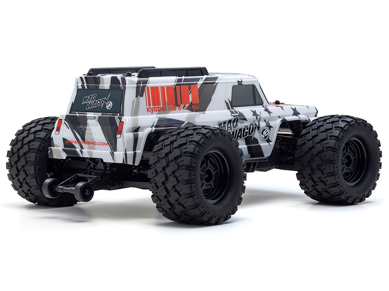 The Monster Truck, otherwise referred to as the ‘Basher’ category, has grown in popularity over many generations. With a pickup truck body mounted on a tough chassis and large diameter tires, monster trucks including R/C model versions, are built to go anywhere from the badlands to stadium courses. Now the Mad Wagon VE puts a unique style on a brute R/C machine! The completely new KB10 4WD chassis design is compatible with 3S (11.1V) high-power lithium polymer (LiPo) batteries and features a newly developed brushless motor and speed controller as standard. Delivering an optimal balance of high-speed and power, the aluminum main chassis of the KB10 combines front/rear blocks incorporating a split frame and double wishbone suspension to drive the all-terrain 2.8” wheels and tires. As the tire size is compatible with standard wheels, you can vary specifications to suit the type of road surface and conditions. In addition, drivetrain parts are shared with the 1/8 scale Inferno NEO ST 3.0, providing more than enough capacity for a 1/10 scale machine. The original 1980’s style van body design is produced in ‘Ultra Scale’ realism. While the body included in the kit is pre-painted, you could create your own custom body coloring design with a clear body as well as elevating the realism with the optional LED light unit (No.97054-4B). The Mad Wagon VE is packaged as a pre-assembled Readyset and requires only batteries for the chassis and charger to get up and running. A wide range of optional parts are available to expand and extend your enjoyment of the R/C car hobby.