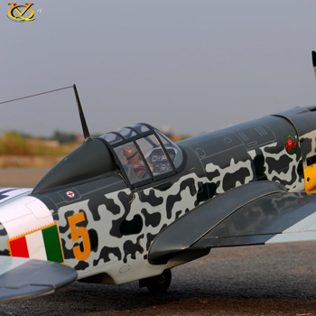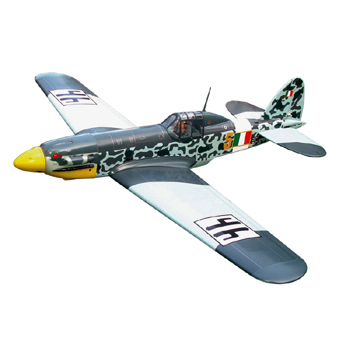 Never before has the Macchi MC.205 Veltro been modeled in ready to fly form. The actual Veltro is so rare that only one flight worthy Macchi MC.205 Veltro still exists in the world today. Be one of the first to own this rare Italian WW II replica fighter. The covering is modeled in high detail, complete with engine exhaust and historically accurate camo pattern. If you want a stunning and unique WW II fighter that stands out in the crowd, this is the plane for you! This updated model design features laser cut balsa and ply construction with built in battery hatch for easy electric power battery pack changes between flights. Model accepts either glow or electric power and hardware is included to assist in mounting either type of power!