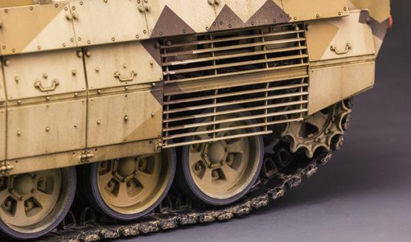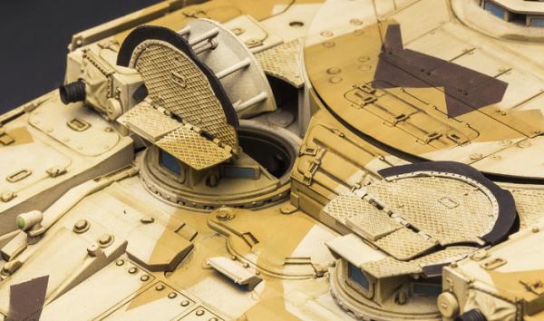 Contains, movable crew hatches like on the real vehicle, grenade launcher operators’ armoured compartments are rotatable, all weapons on the vehicle are movable, lights, periscopes and optical equipment are provided with clear parts, realistic torsion bar suspension is movable, a brand new tool is provided for positioning the suspension, cement-free workable double-pin tracks are provided and three paint schemes are included.