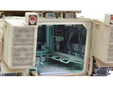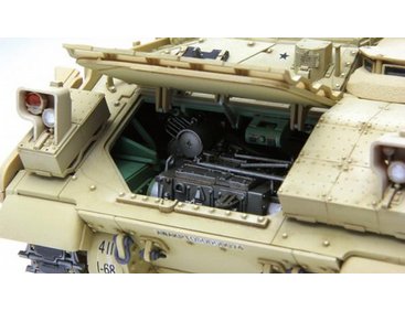 This 1/35 scale U.S. Infantry Fighting Vehicle M2A3 Bradley w/BUSK III model is 203.5mm long, 107.3mm wide and 97.1mm high (to the top of the closed Commander s Independent Thermal Viewer). In addition to features like accurate shape, rich details and perfect fit, this kit also provides full hull and turret interiors (incl. engine, transmission and all parts in the driver’s compartment and passenger compartment). The real vehicle’s complete structure and details are precisely replicated with movable hatches, workable tracks, movable suspension and the linkage of the coaxial machine gun sight.