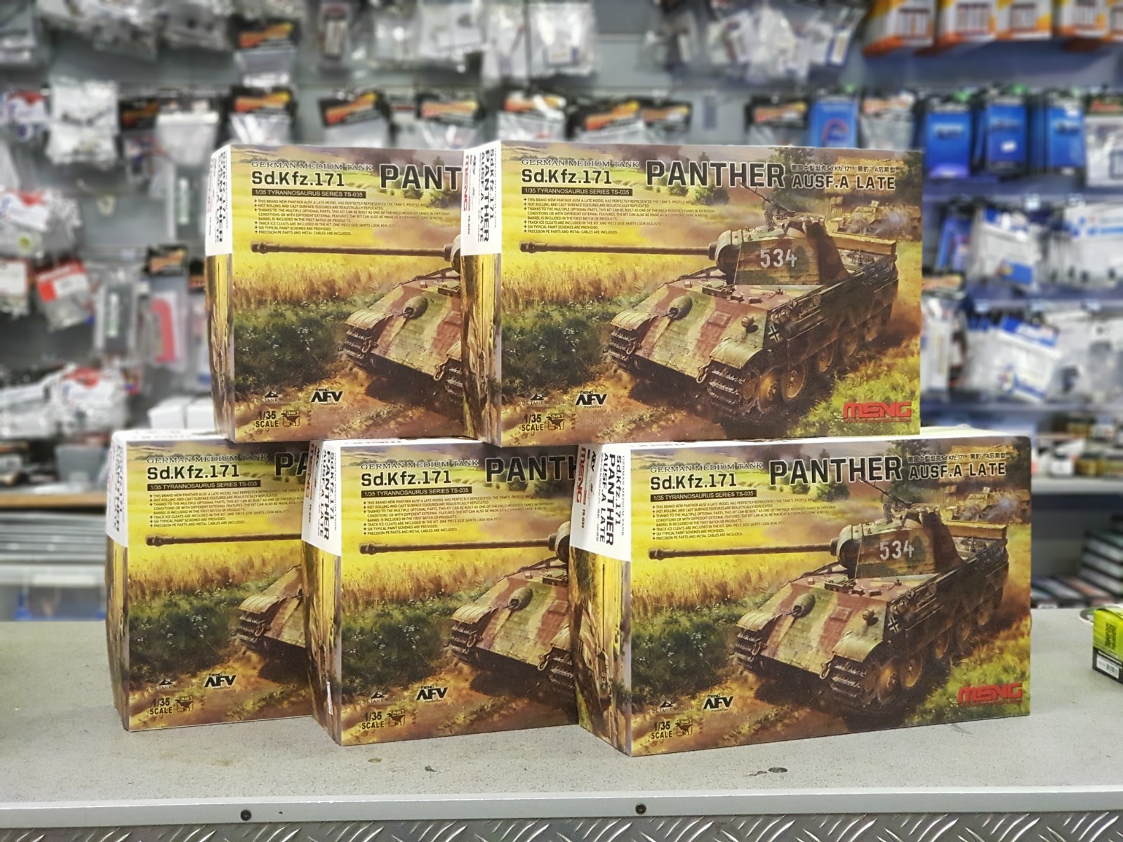 Panther was the most excellent German medium tank during WWII. When it was deployed, Germany was greatly weakened. Thanks to its unparalleled performance, it became one of the backbones the Germans could rely on. It was even used by the opponents to the end of the war. Its 7.5 cm KwK 42 L/70 long tank gun could penetrate almost all the armor of its rivals. Its inclined armor provided better protection than the Tiger I. The Maybach HL230 engine could drive the vehicle to run at the high speed of 50km/h. Its wide tracks and interleaved road wheels could turn the uneven earth to a flat ground. The Panther was a perfect response to the requirements of German armor units. Now the Panther has become one of favorite armor kits modellers wantTen years later, another Panther Ausf. A plastic model kit is coming. The TS-035 German Medium Tank Sd.Kfz. 171 Panther Ausf. A Late is another kit of famous WWII armor MENG release with the help of The Tank Museum in Bovington, UK and the editor Mr. David Parker of the Meng AFV Modeller magazine. The assembled model is 251.8mm long, 98.6mm wide and 85.27mm high. A total of 1,118 parts are included in the kit. MENG’s team has designed this kit with the experience gained from the previous kits and insisted to bring more fun to different modellers.