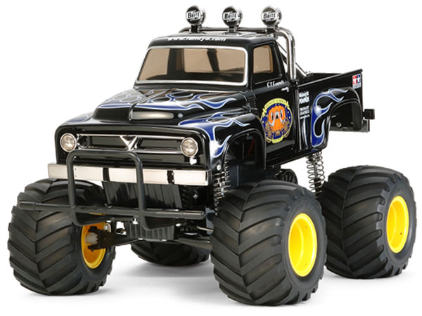 The 1950’s style U.S. style pick-up truck body is raised up over the monster truck wheels to ensure that this R/C truck will get attention anywhere you choose to drive it.