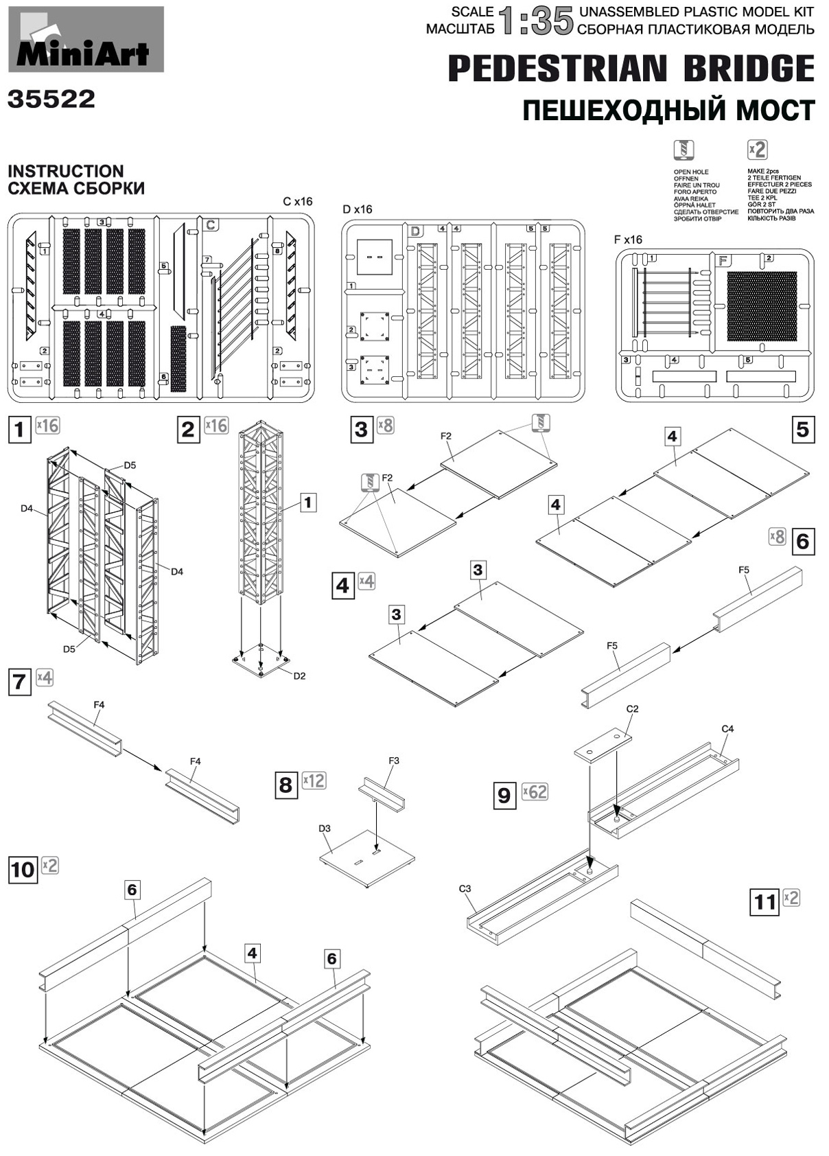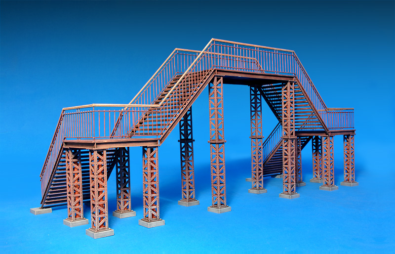 This kit contains unassembled and unpainted model of a pedestrian bridge