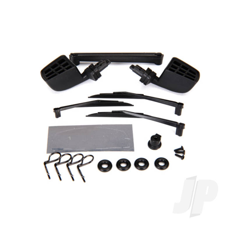 Mirrors, side, black (left & right) / o-rings (4 pcs) / windshield wipers, left, right, & Rear / wiper retainers (2 pcs) / Body clips (4 pcs) / 1.6×5 BCS (self-tapping) (3 pcs)
