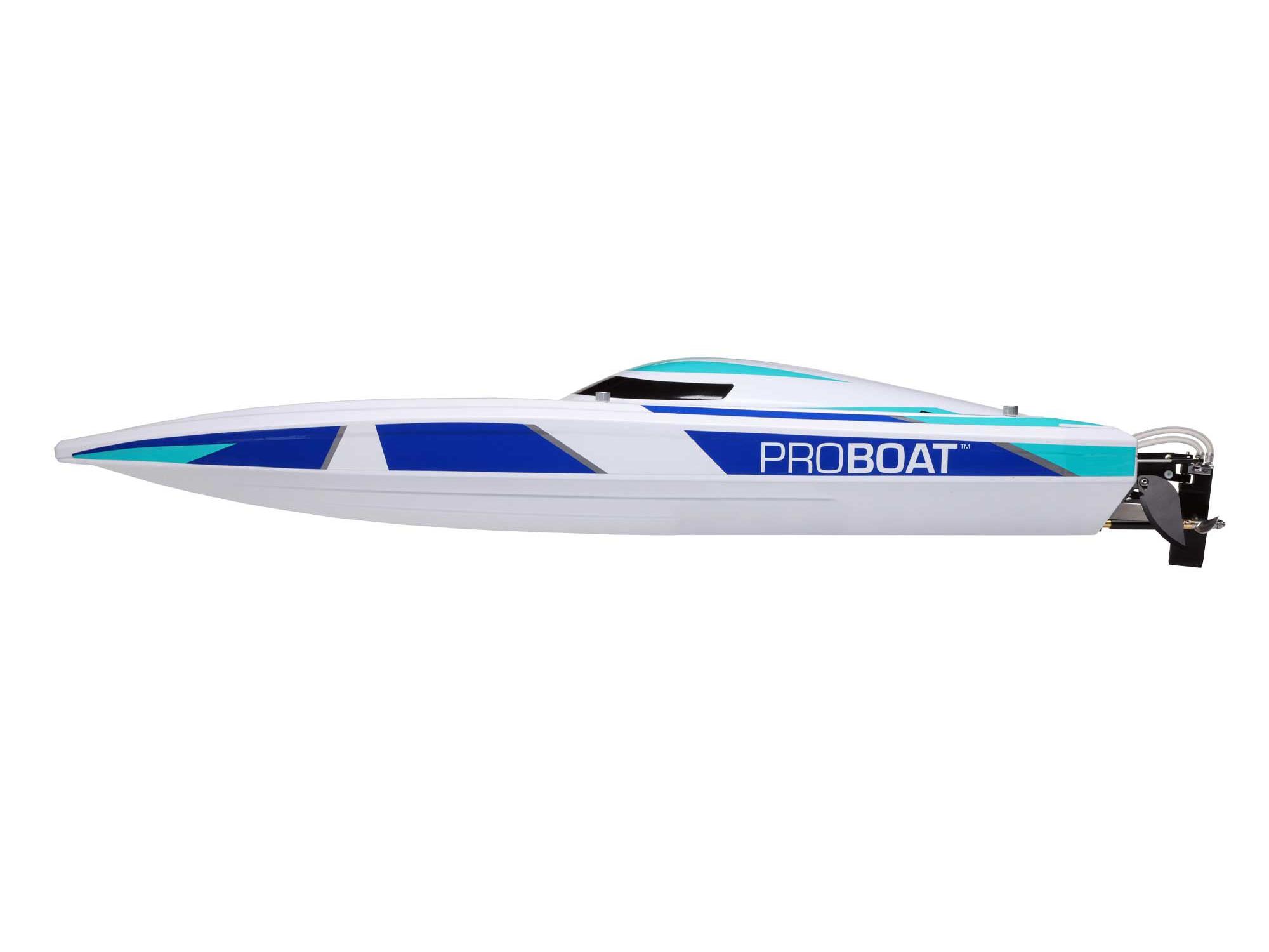 Break through choppy water and go full throttle with the Pro Boat® Sonicwake 36-inch Self-Righting Deep-V. The perfect Deep-V for the beginner to the avid boater, it offers performance capable of hitting 50+ MPH and a worry-free self-righting feature that flips the boat back upright in a matter of seconds. The water-cooled 4-pole 1900Kv brushless motor invites you to go fast while the high torque, metal gear, and waterproof steering servo keeps you in control. It features improved dual water cooling, adjustable trim tabs, and larger turn fins. No matter your skill level, the Sonicwake features everything experts and beginners alike want in a Deep-V.