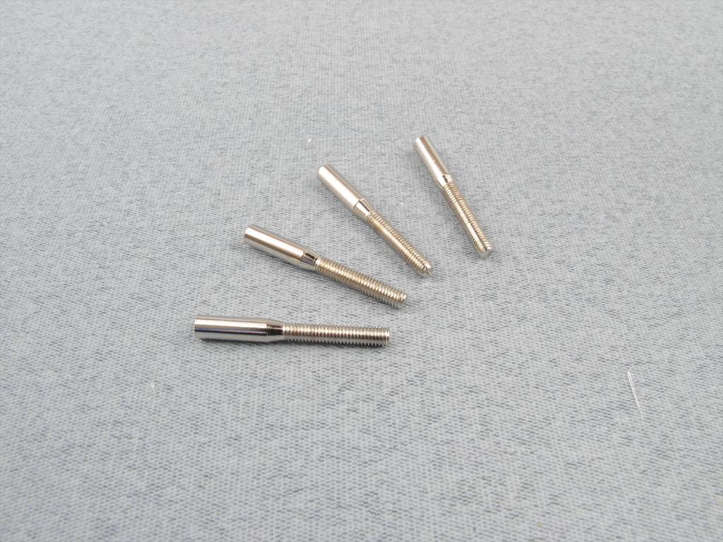 Metal Extender. Can be secured with adhesive, soldered or crimped to bowden cable etc. Used with F-LA360/M2 for adjustable linkage, M2 thread length approximately 23mm.