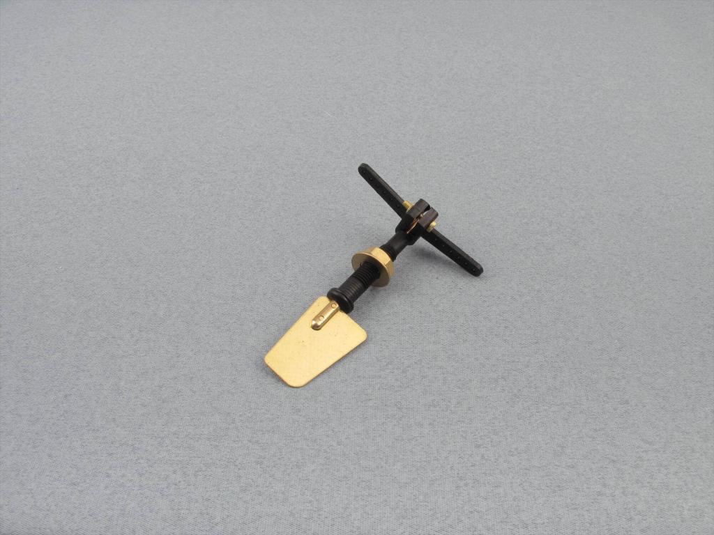 Comprising of a brass rudder riveted to shaft. Glass filled nylon outer bearing, brass nut and washer, rubber sealing ring, glass-filled tiller arm with clamp fitting. Mirco rudder blade.
