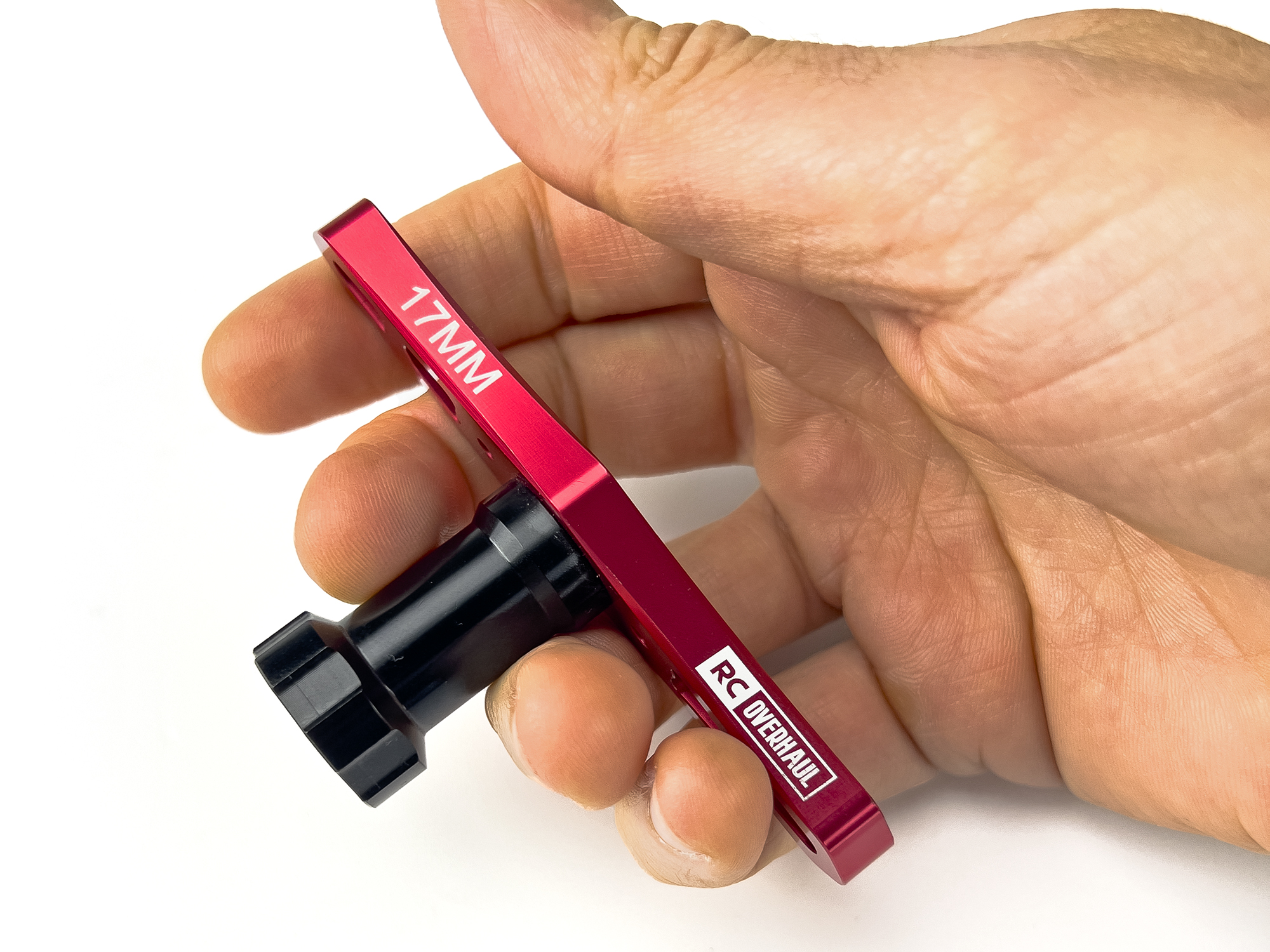 Beautifully machined from aluminium it is a lightweight tool that has the handle anodized red and the shank black that makes it durable and aesthetically pleasing. Erogonomic to use it fits nicely into your hand and the handle shape offers plenty of leverage to tighten or loosen those wheel nuts. Finally the wrench is finished off with the ‘RC Overhaul’ logo that adds a smart small detail to the part.