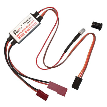 This device allows you to safely and remotely kill your electronic ignition equipped engine from your transmitter. The ignition system is Fibre Optically Coupled to isolate your ignition system from your radio system. (No Interference!!)