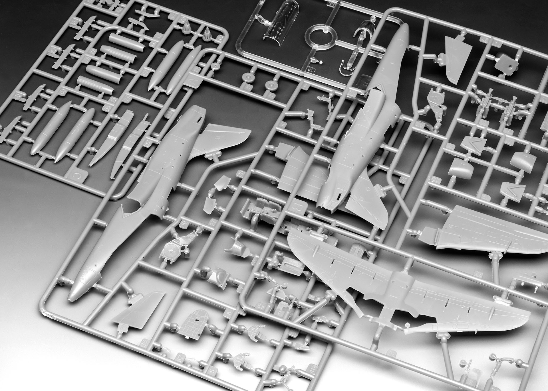 The Hawk T.1 model kit comes with an extensive package of components and extras. In addition to the non-assembled plastic model kit, it contains an illustrated, multilingual building instruction and decals for the true-to-the-original RAF version. In addition, the set includes detailed representations of the cockpit, landing gear, two rocket containers and two additional tanks.