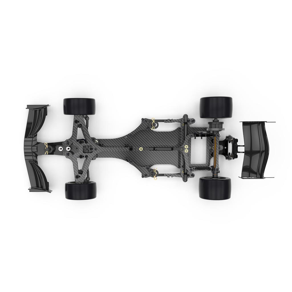 • New – All new design for the rear wing mounting assembly, featuring 7075 Aluminium lower, and C/F upper components. Style, centre of gravity, durability and stiffness has been improved in this area.