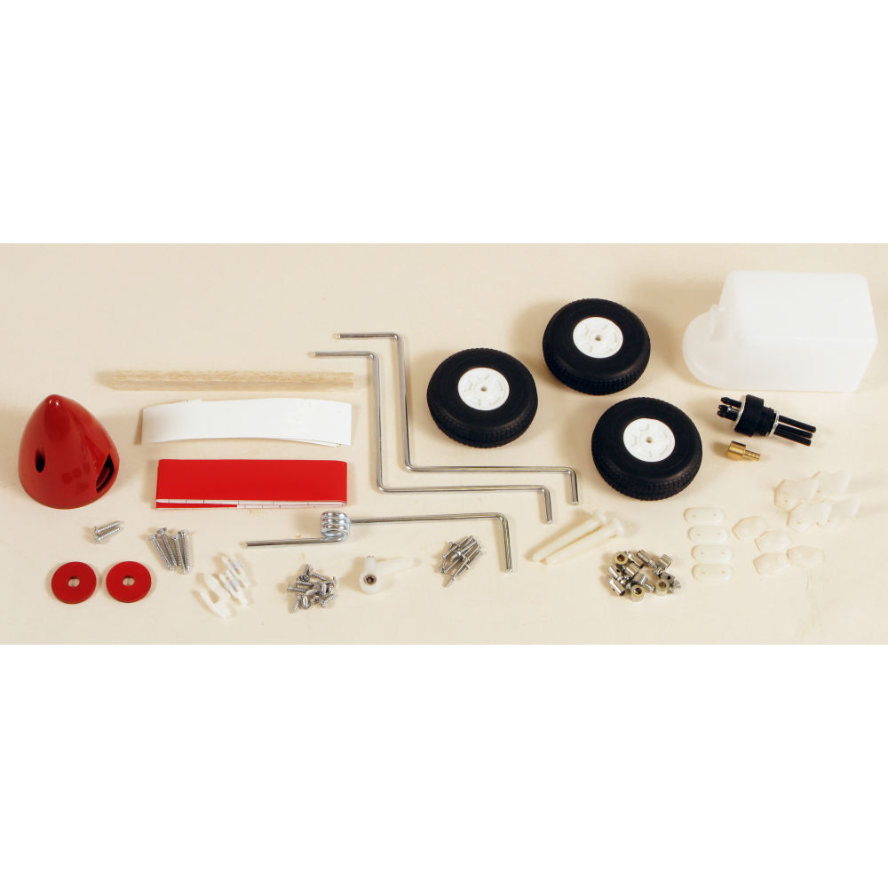 - Full hardware set including fuel tank, wheels, engine mount, spinner etc.