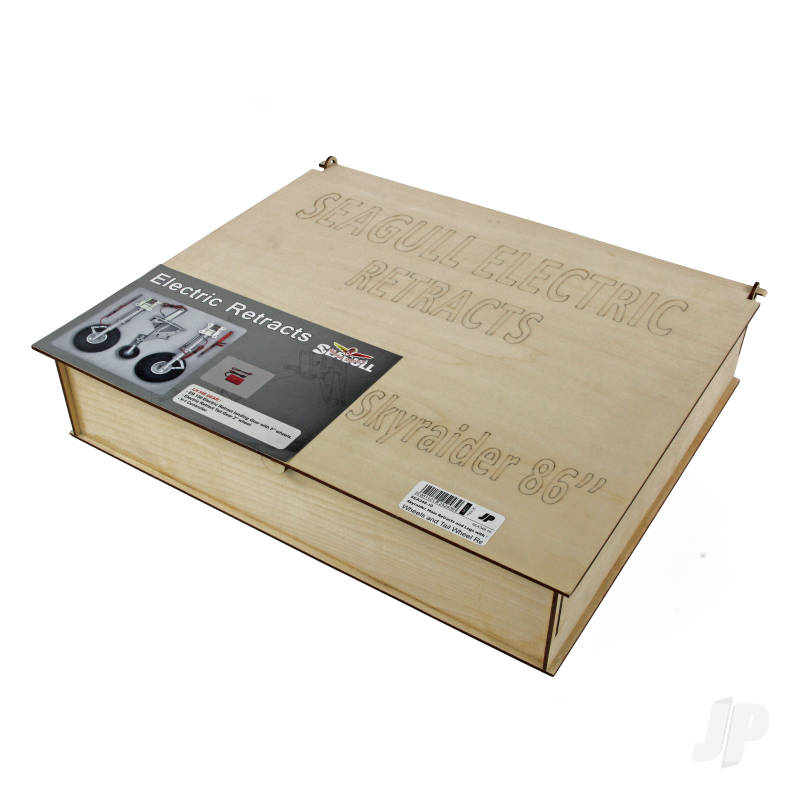 A beautifully engineered, electric, retractable undercarriage set for the 86 inch span Seagull Skyraider. The package features twist ‘n’ turn main legs with 5 inch diameter wheels and pneumatic tyres, plus an electric retractable tail wheel unit with 2″ wheel and rubber tyre.