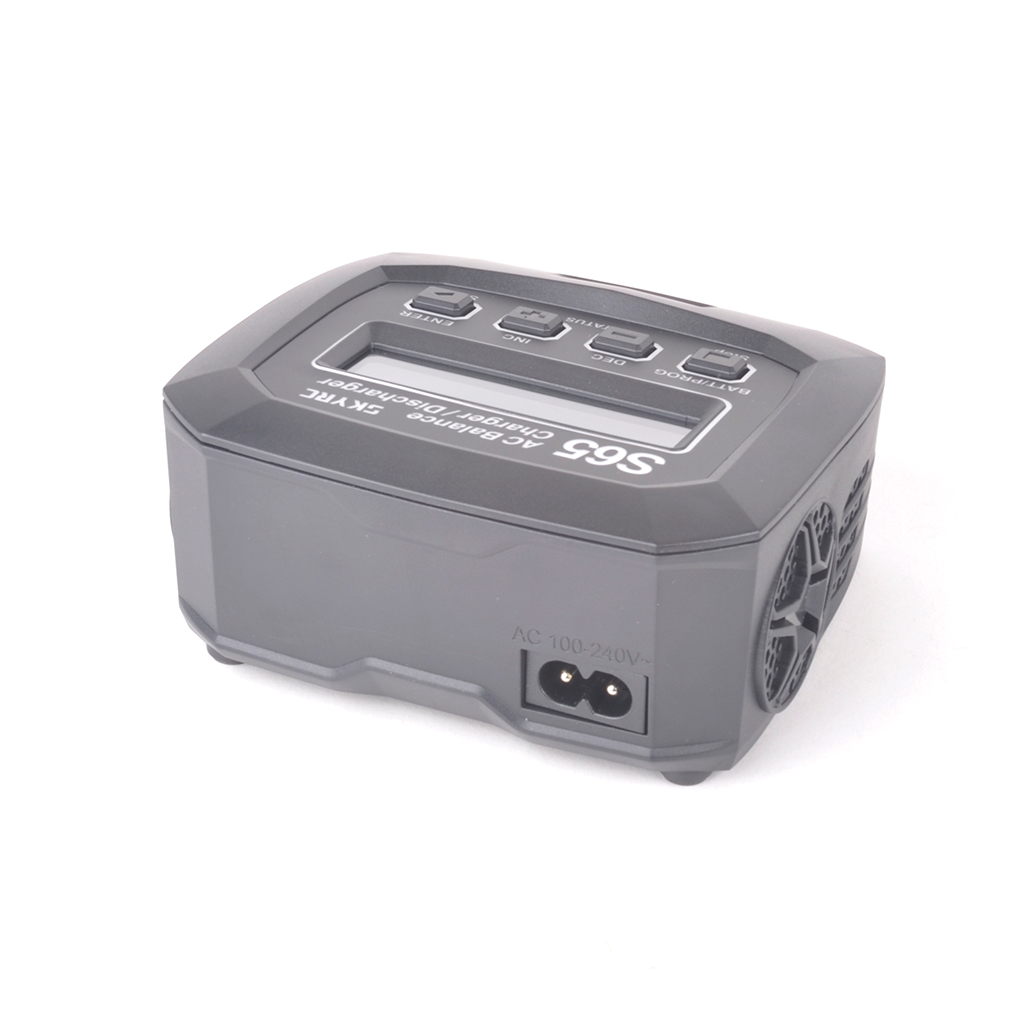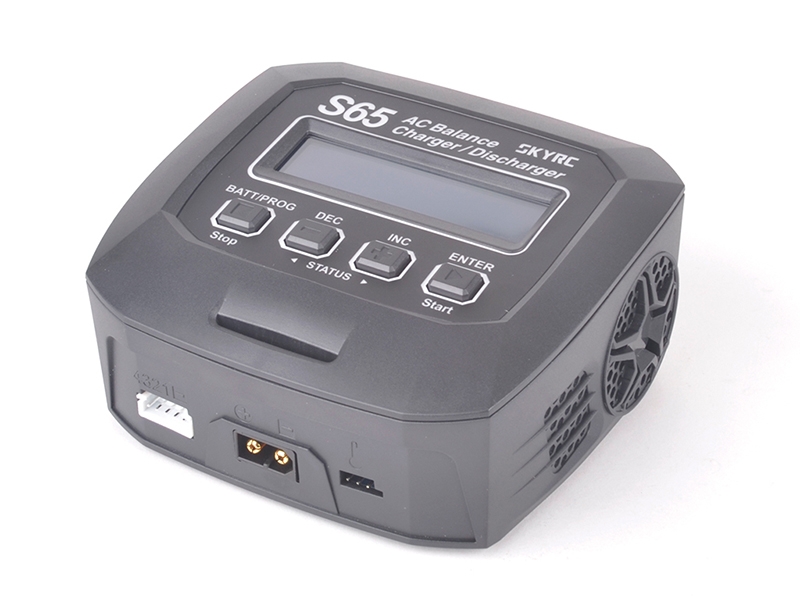 SkyRC S65 AC Professional Charger/Discharger stands out for its angular design and compact size by packing a big power of 65 watts into such a small case. Compatible with a full range of the most popular battery types, including the new generation LiHV, the S65 keeps your batteries powered up with 6-amps of charging power.