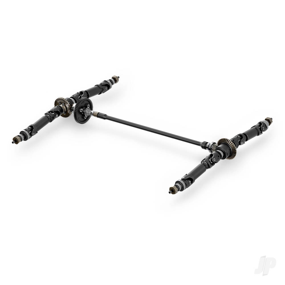 - Full-time shaft-driven 4-wheel drive with oil-filled steel gear front and rear differentials and large 32-pitch spur gear