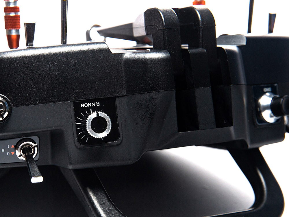 The NX10 transmitter’s Hall-effect sensor gimbals offer long-lasting precision with an ultra-smooth feel that’s conveniently adjustable from the front of the transmitter. Weight distribution and switch placement have been optimized for comfort and precise, fatigue-free control. Rubber grips make it easy to hold the radio securely. Its antenna folds conveniently to the front for compact storage and transport. It also helps to prevent accidental powering on by partially blocking the power button.