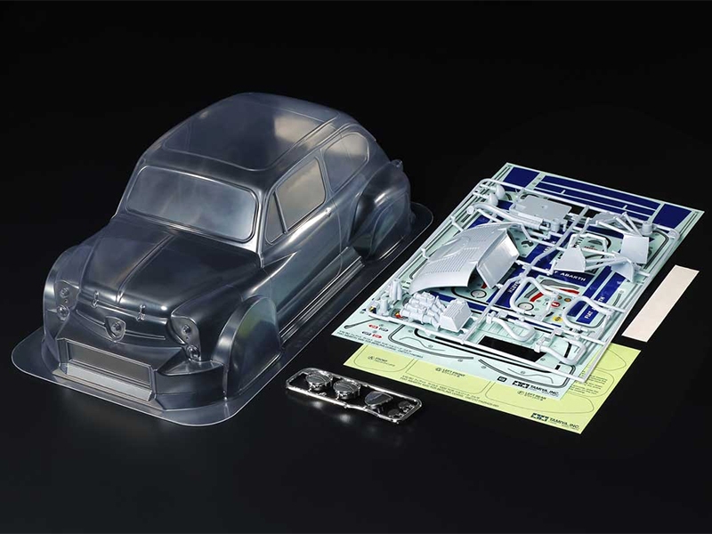 This body parts set recreates the Fiat Abarth 1000 TCR Berlina Corse. It is made of polycarbonate with detail pieces made of PC-ABS plastic.