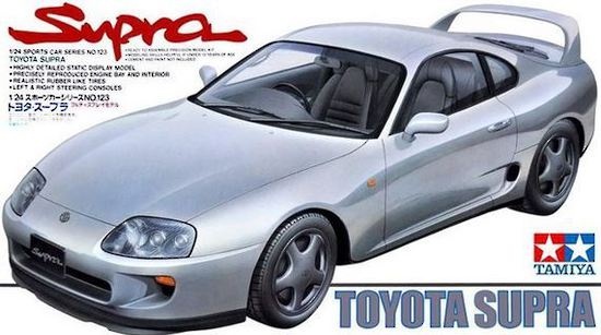 ★This is a 1/24 scale plastic model kit recreating the 2nd generation Supra that was announced to an expectant public in Chicago, February 1993. ★From the stylish rear wing to the straight-six twin turbo engine underneath the opening hood, the car is depicted in style. ★The underside shows off great detail with depictions of the suspension, as does the realistic interior. ★Tires feature realistic tread pattern. ★Choose to assemble the model as a left- or right-hand drive car.