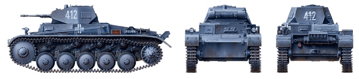 In the early days of WWII, the Pz.Kpfw. II Ausf.A/B/C was one of the main components of Germany’s armored forces as they smashed through Europe with their Blitzkrieg tactics. Despite having only 15mm of armor protection and a 20mm main gun, this compact tank was on the front lines as adequate numbers of Pz.Kpfw. III tanks were not available. For the invasion of France, many tanks featured additional bolt-on 20mm armor plating on the hull and turret.