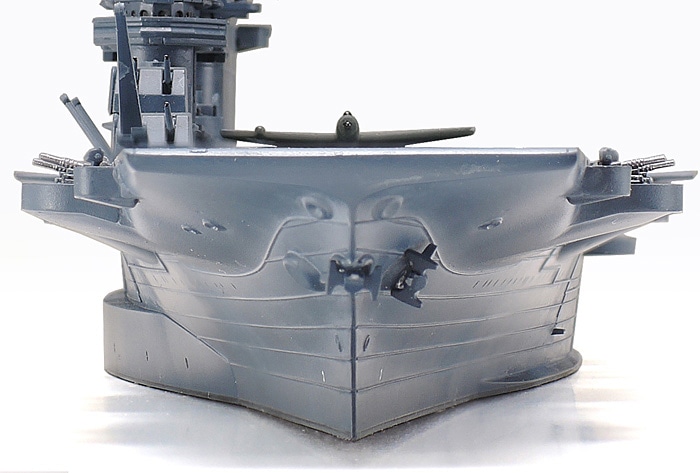 This is a plastic model assembly kit of the U.S. aircraft carrier CV-3 Saratoga. It depicts her as she appeared in the Battle of Iwo Jima in February 1945. ★Length: 396mm, width: 55mm. ★The slim-line form originally intended as a battle cruiser is recreated in left and right side hull pieces. ★The flight deck is molded in a single piece, including details such as arresting wires, and the central guide rails used for moving seaplanes. ★The starboard side bulge gave the Saratoga an asymmetrical form which is faithfully captured by the model. ★Large starboard funnel and bridge to its fore are also realistically replicated. ★The model is packed with details, including recreations of the Mk.37 gun director, SK radar antenna and funnel-front SM radar, plus 40mm quadruple and 5-inch gun positions, and even lifeboats! ★Waterline plate is attached as an integrated part of the hull. ★Decals are provided to recreate lines and deck-top markings for a highly effective finish. ★Parts to recreate four each of Avenger fighter and Hellcat bomber aircraft with radar pods are also included.