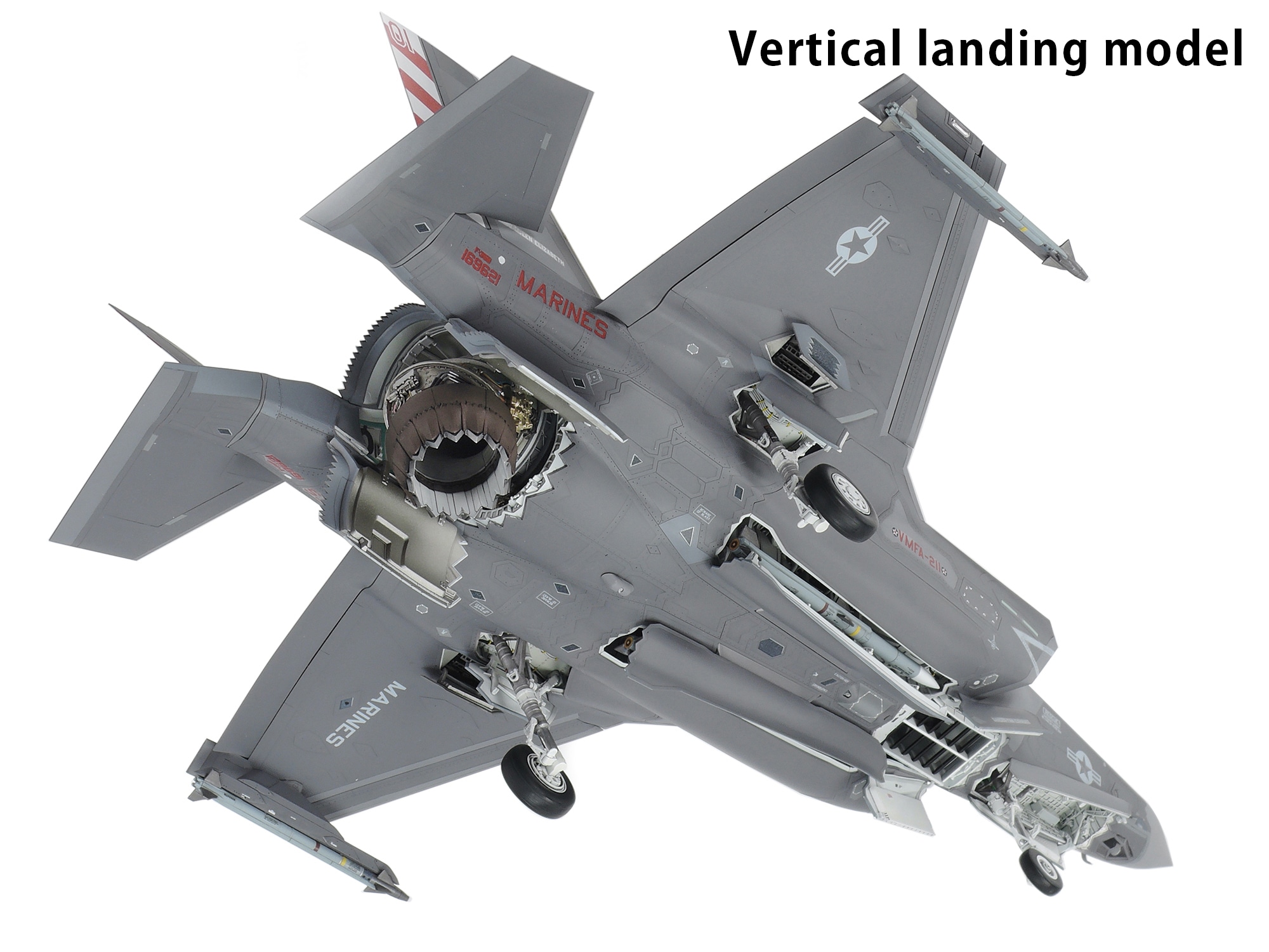 - Shorter fuselage weapon bays compared to the F-35A are newly moulded and have detailed depictions of cables.