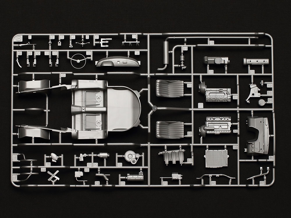 • The elegant 300 SL silhouette is captured by clear body, engine hood and gull wing door parts that can be left unpainted to allow appreciation of the detail underneath.