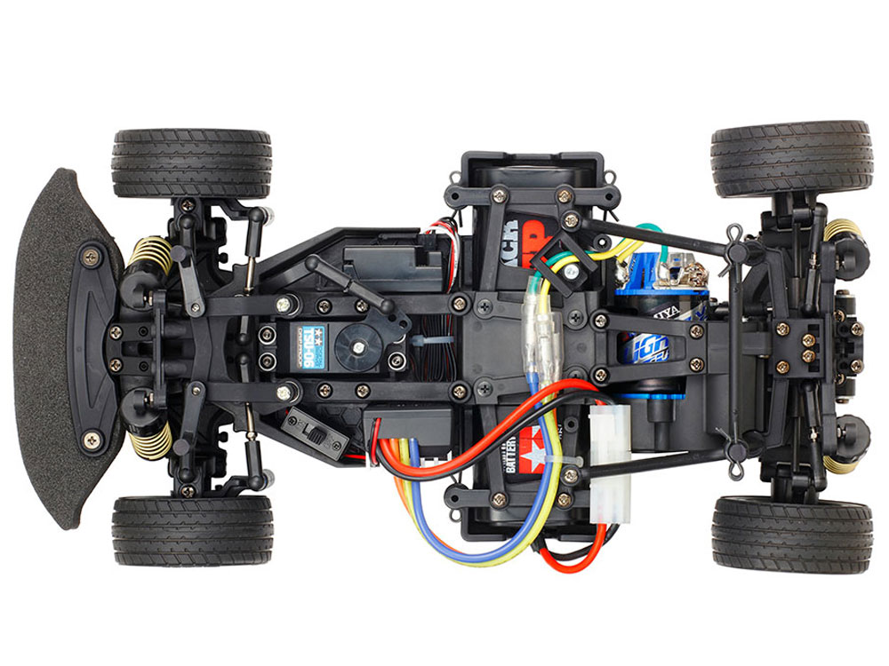This TAMIYA high-performance rear-wheel drive R/C chassis assembly kit is constructed around a rigid monocoque with the main frame split into front and rear sections. It offers superior rear high traction drive characteristics and fuss-free maintenance of parts such as the easy-access differential. C.V.A. (Constant Volume Adjustable) oil shock-damped 4-wheel double wishbone suspension features dedicated long arms and steering linkage components for a range of setup options. A silky-smooth drivetrain utilizes full ball bearings, oil-filled gear differential unit and universal drive shafts. It can be assembled with a 210mm (S), 225mm (M) or 239mm (L) wheelbase, making it compatible with appropriately-sized existing Tamiya M-chassis body parts sets.