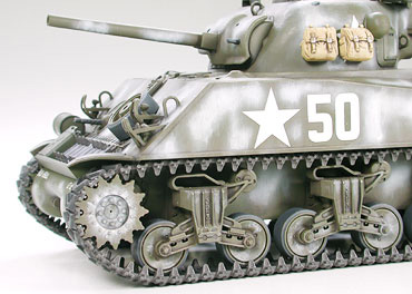 ★Plastic assembly model kit based on the main tank of the WWII U.S., the M4 Sherman. ★Overall length: 172mm, overall width: 76mm. ★The smooth form of the cast turret with 75mm gun and welded hull of this late production M4A3 tank overflow with realism. ★Two kinds of commander’s cupolas; loader’s hatch and other hull and turret hatches can be modeled in the open or closed position. ★Two kinds of road wheels and sprockets can be selected; rubber padded tracks also included. ★Three crewman and one tank commander in realistic poses bring an air of excitement to the kit. ★Included equipment includes ammunition boxes, tripod, ration boxes, and much more. ★Three types of decals included.
