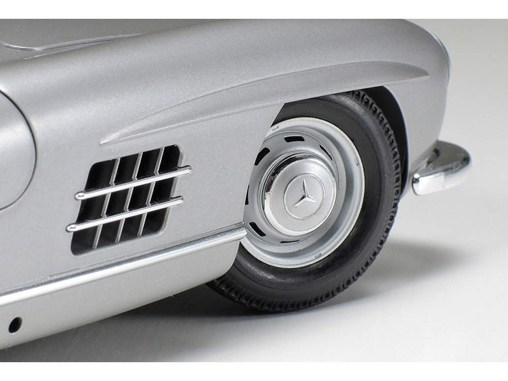 ★This is a 1/24 scale plastic model assembly kit of the Mercedes-Benz 300 SL. ★Length: 188mm, Width: 75mm, Height: 53mm. ★The complex tubular space frame is given a breathtaking rendition in 1/24 scale. It is constructed in the same way as that of the actual car. ★The sporty yet elegant form of the body is captured magnificently. ★Gull wing doors are moving, and can be left in open position. ★The engine hood also opens, to reveal the realistic recreation of the 300 SL’s inline-6 engine. ★Nylon mesh is included to recreate the front intakes. ★Metal transfers are provided to depict mirror surfaces and logos.