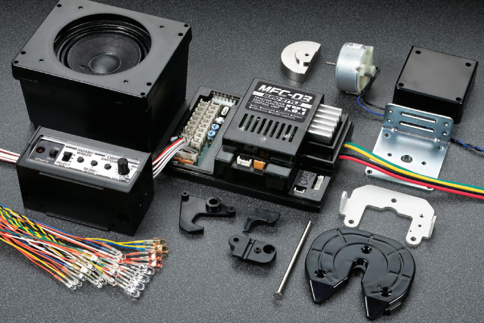 The popular Multi-Function Control (MFC) unit for R/C tractor trucks, which adds a whole extra layer of realism to driving, receives an update. This unit allows transmitter trim levers to be combined with stick control use, meaning you can enjoy lights, sounds and vibrations coordinated with actions while driving your R/C tractor truck model. This version of the MFC features engine sounds which were recorded from a real European truck’s L6 diesel engine for amazing realism.