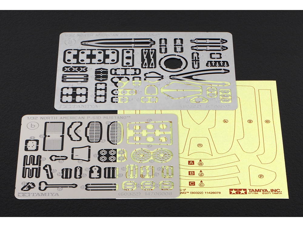 1/32 scale plastic assembly kit of the P-51D Mustang. ★Overall Length: 308mm, Overall Width: 354mm. ★Famous form of the aircraft including its distinctive wing profiles have been precisely reproduced. ★Radiator components are reproduced just like those on the actual aircraft. Both the radiator flap and oil cooler flap are movable. ★You can select either early- or late-type tails, with the latter featuring the dorsal fin. ★Parts for 75- and 108-gallon drop tanks are included. ★Comes with 3 kinds of markings to depict aircraft from the U.S. 8th Air Force. ★A 16 page full-color photographic reference manual is also included.