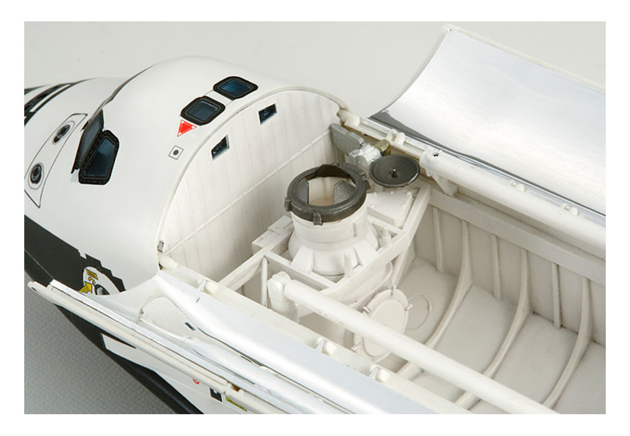 The payload cargo bay can be loaded with the detachable MPLM and features doors that can be opened