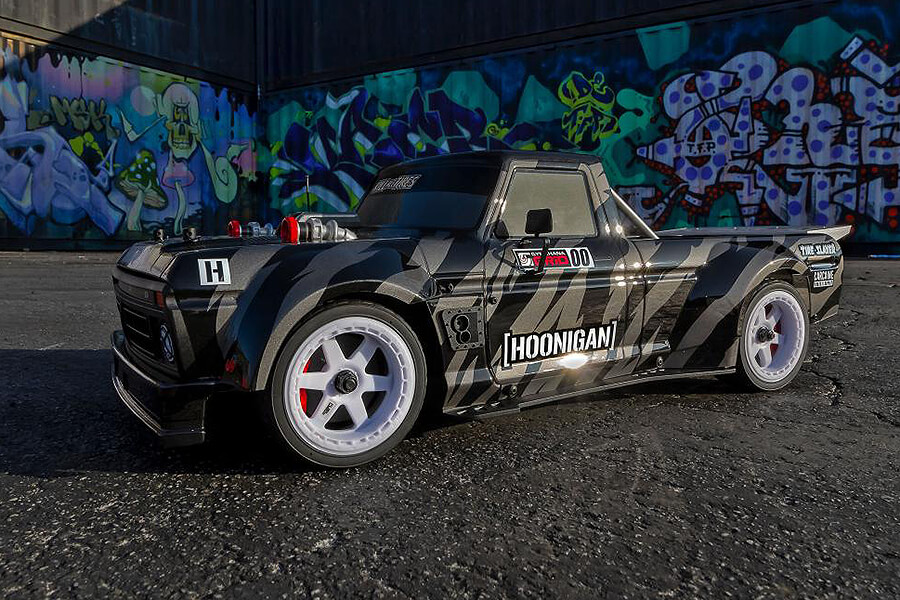 Team Associated is excited to partner with Hoonigan® to bring you their world-famous Hoonitruck in radio-control form. Built on an all new Apex2 chassis, the Team Associated Hoonigan® Hoonitruck is a tire-slaying beast!