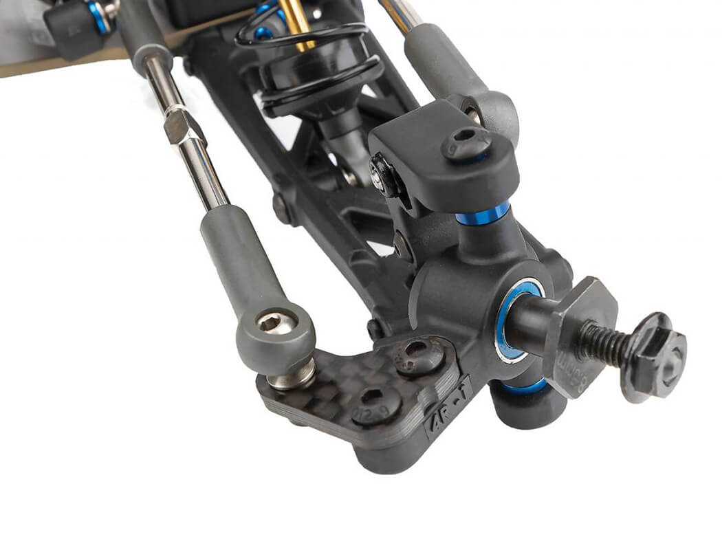 - New front ballstud mount and top plate with angled steering system for improved steering consistency