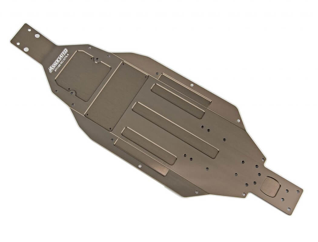 - Aluminum RC10B6.4 ESC mounting tray shifted forward in the chassis and with a wider footprint to fit electronics, resulting in a weight bias placed further forward