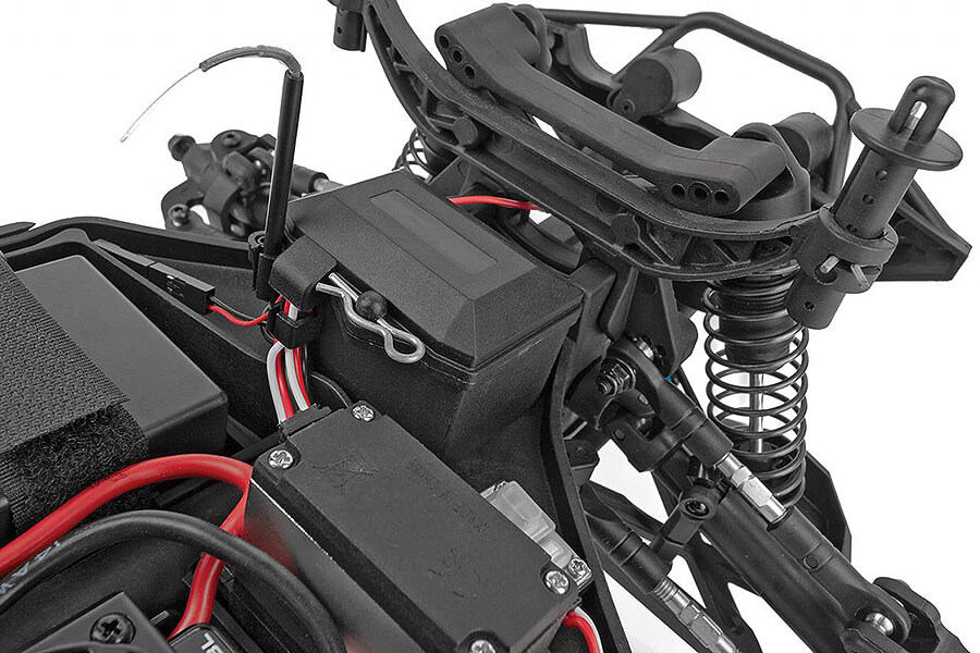 - Water-resistant high-power Reedy brushless speed control with T-plug connector and LiPo low-voltage cutoff