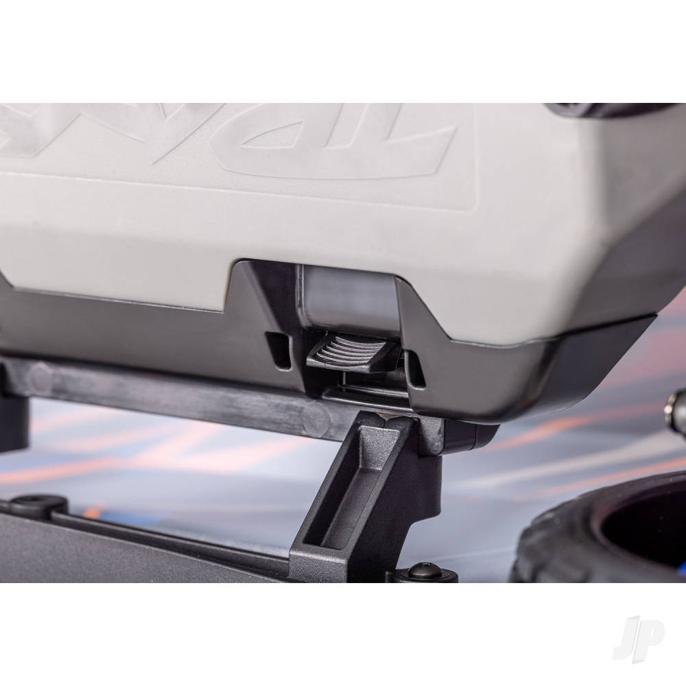 Rally’s innovative clipless body features secure mounting with quick and easy removal. No posts, no clips—just drop the body onto the chassis and snap it into place for a secure hold. When it’s time to change the battery, release the side tabs and lift up to access the chassis in just seconds.