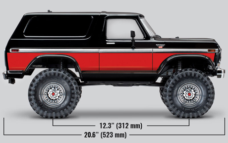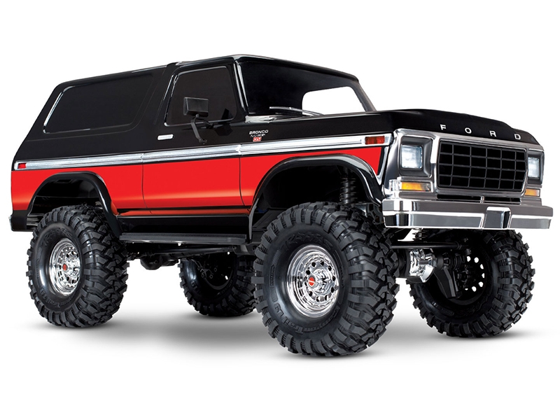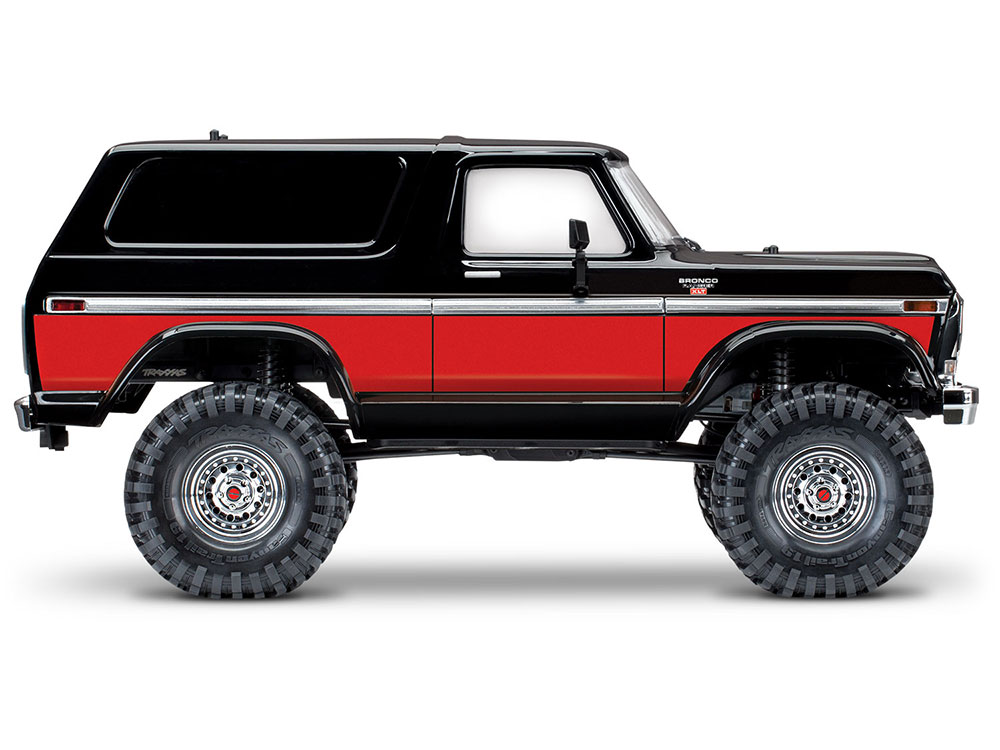 Originally introduced in 1966 as a 4X4 compact SUV, the Ford® Bronco matured as a full-size truck in the late 1970s, cementing its status as a rugged off-roader. Traxxas honors the classic 1979 Ford Bronco with this beautifully detailed and faithful reproduction mounted on the incredibly capable TRX-4® chassis. From the chrome wheels and bumpers to the gorgeous Sunset or red graphics, the TRX-4 recaptures the Bronco’s iconic era with the toughness and technology that could only come from Traxxas.