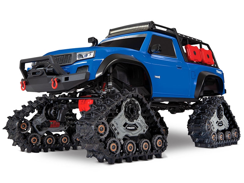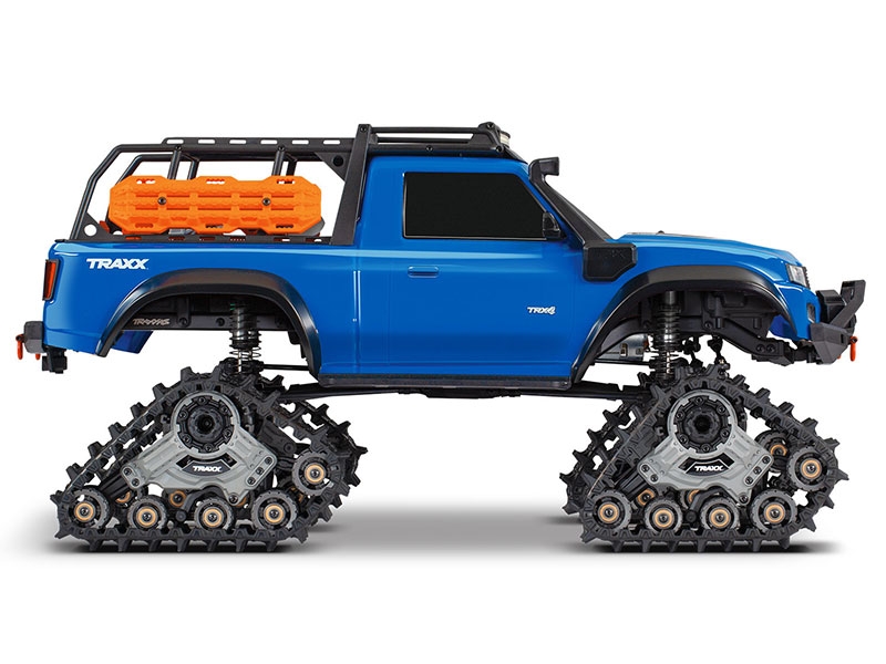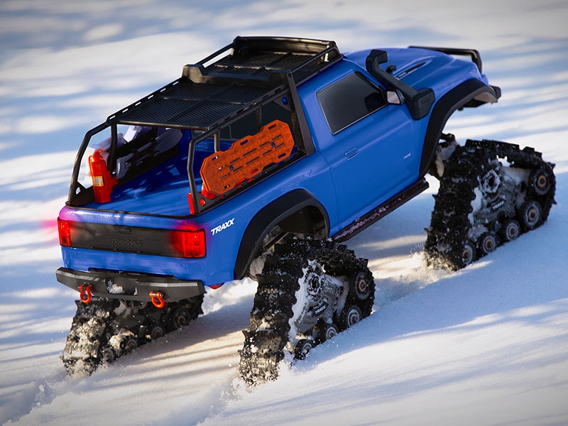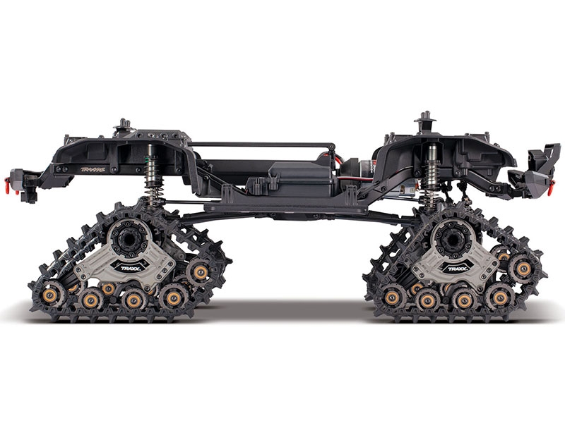 Outfitted with Traxx, TRX-4 transforms into an all-terrain monster. The enormous contact patch and grippy treads shrug off the deepest mud and float across sand. Traxx increases ground clearance and approach angles to let you straddle even larger obstacles and climb steeper grades without breaking a sweat.