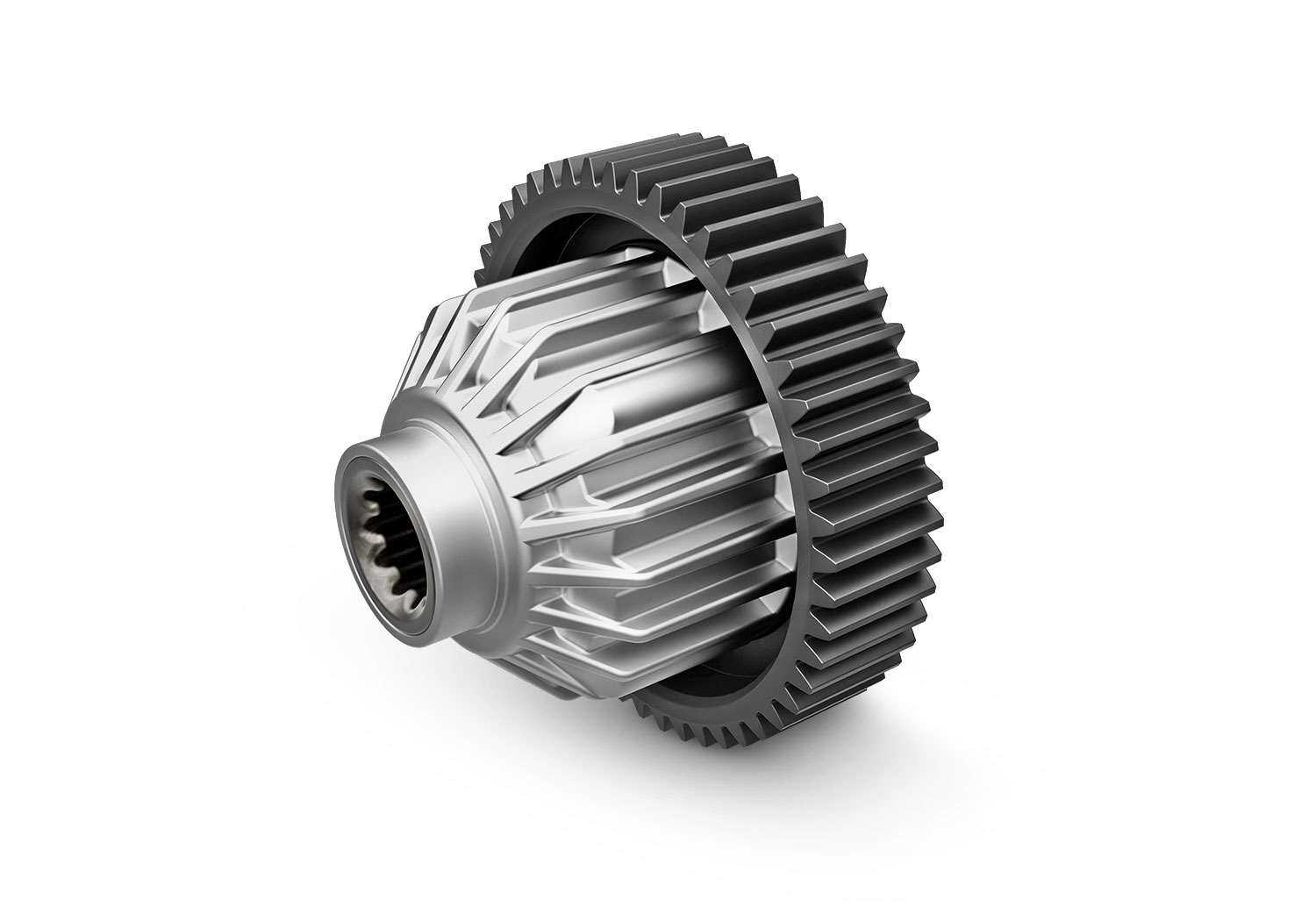 - Torque-biasing centre drive with fixed gear mesh system and mod-1 steel pinion and spur gear transmission
