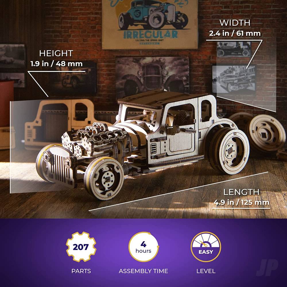 - Easy assembly: This vintage care model kit has 207 parts and is rated “Easy.” It’s a perfect introduction into the world of model building kits and 3D puzzles for beginners. You can bring the model hot rod to life in about 4 hours