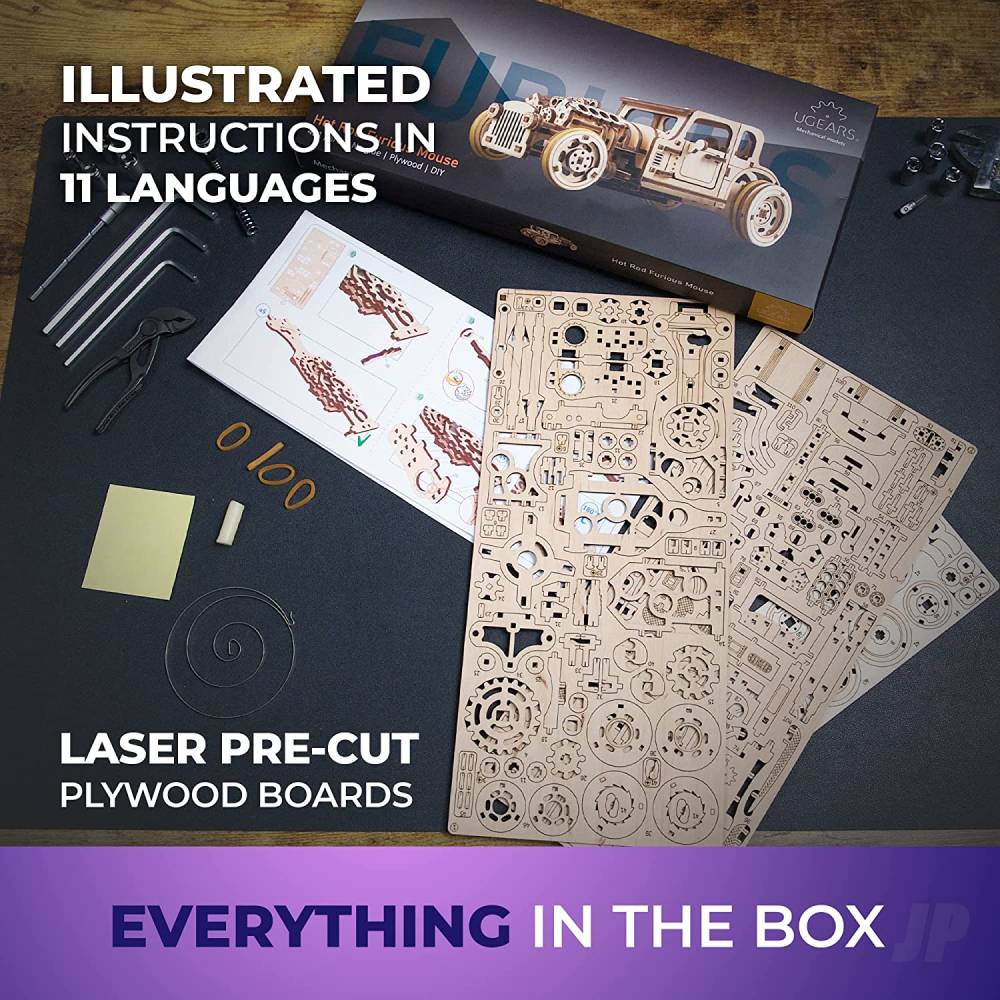 - Dual engine functionality: Hot Rod Furious Mouse is the first model kit in the new Dual Motors collection by UGears. To start the wooden toy car, wind the spring motor for six full rotations of the ratchet or activate the pullback mechanism by simply pulling back and releasing the car on a flat surface