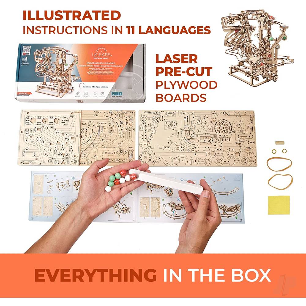 - Fascinating gift: UGears marble run building kit will always delight and surprise family, friends, or colleagues. Get your Marble Run Chain Hoist model building kit now and let the good times roll