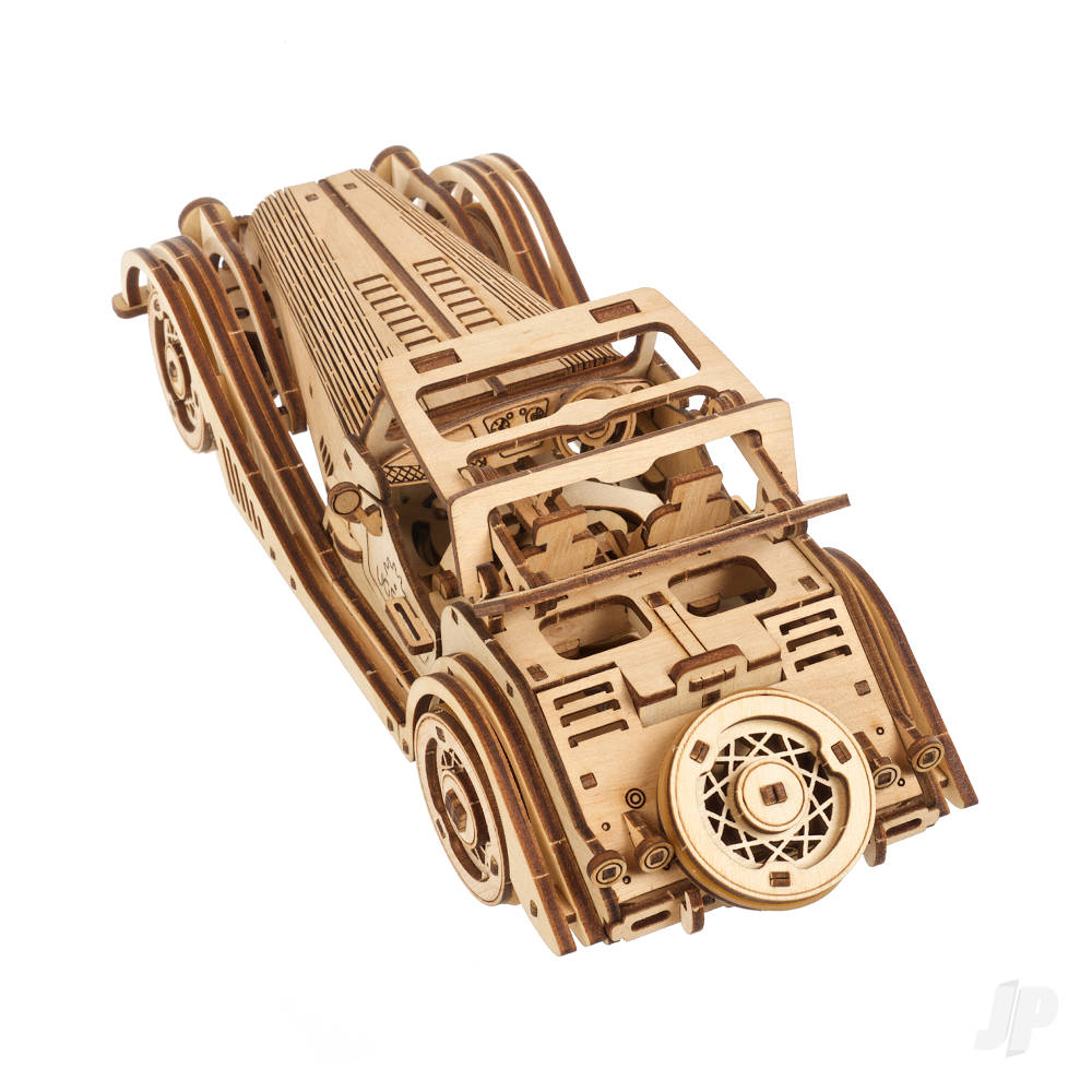 - Vintage race car: This gorgeous 1:24 scale mechanical model automobile is a miniature of a mid-20th century classic roadster. Similar to other UGears 3D puzzles for adults and buildable model car kits, our convertible racer features a wonderfully detailed interior and exterior and impeccable mechanics
