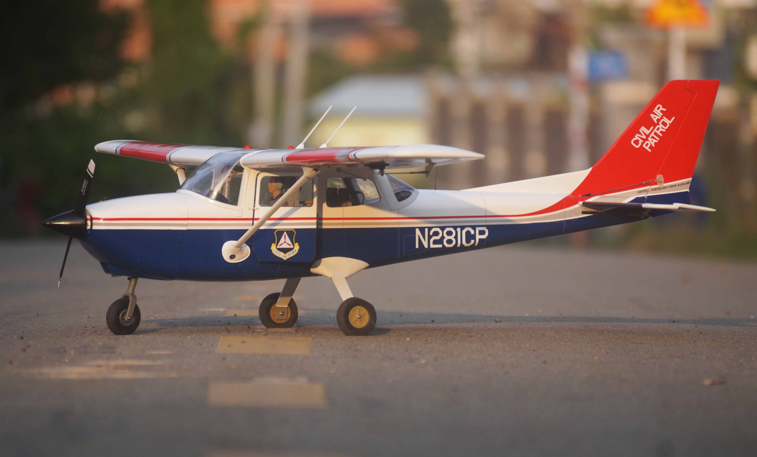 VQ Models introduced the Cessna 172 Skyhawk in size 50 EP-GP , this is a popular size when you have a lot to choose from , you can go for a Nitro engine 55 -2 stroke , an 82 – 4 stroke nitro engine or a 10cc gasoline engine . You can also use an electric motor (like the Boost 50 electric motor ) and easily install a 4S – 5000 mAh battery. And no matter what you attach, this Cessna 172 still flies like a high wing sport plane .